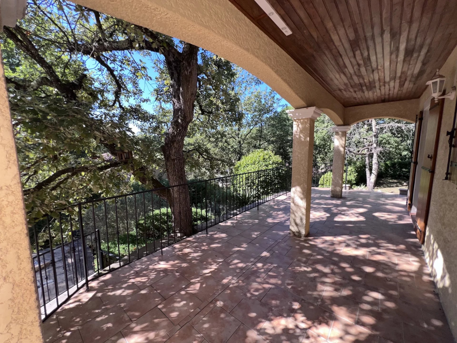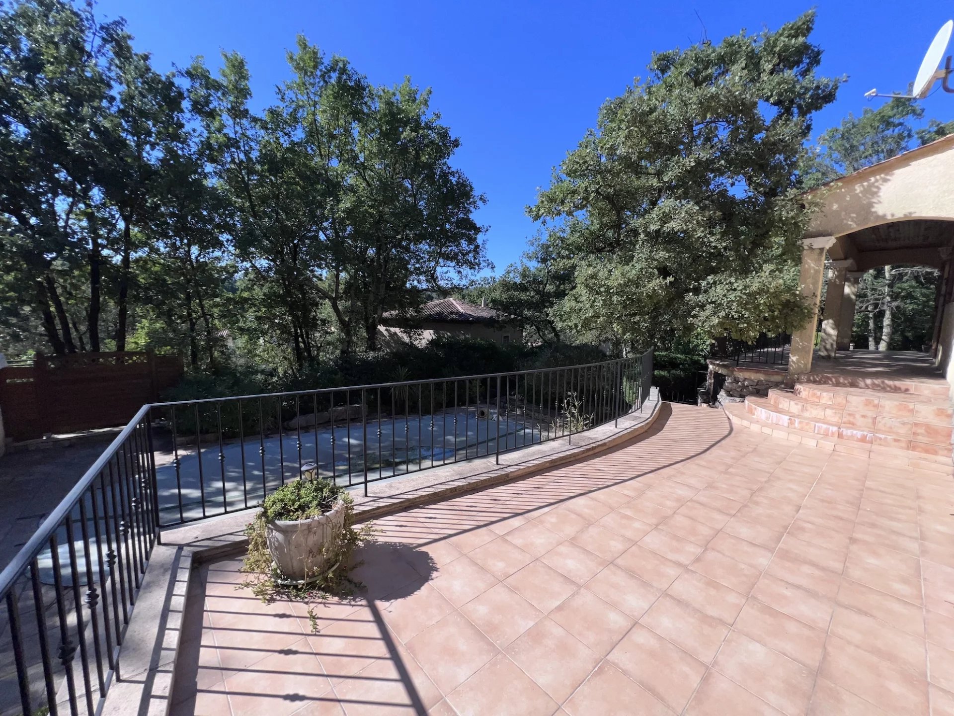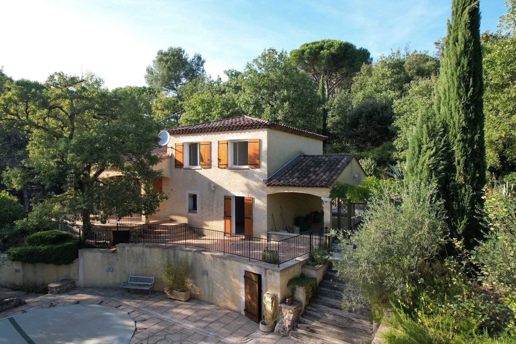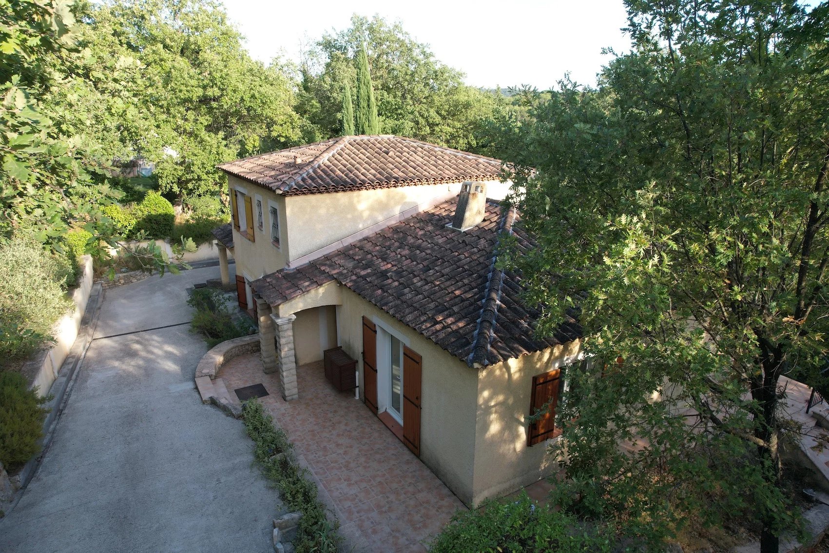 HOUSE - 5 MINUTES FROM BRIGNOLES, 45 minutes from the seaside, Toulon, Hyères and the Gorges du Verdon, in the heart of Green Provence, close to all amenities, primary schools, college... located in a quiet residential area, pleasant Provençal house set on fenced wooded plot 1 400 sqm planted with Mediterranean trees. Nice pool with its terraces, pool house. Entrance, comfortable living / dining room with chimney, large terrace on the south partly shaded, open furnished kitchen, storage room / laundry room, 2 bedrooms, shower room and toilet. Upstairs : 3 bedrooms, bathroom with toilet. Carport for 2 cars, garden shed, air conditioning, fiber, city water, mains drainage... In good condition, perfect exposition on the south, the house is light and pleasant to live in. Excellent rental income possible for seasonal rental. Quiet, privacy, it will be a peaceful place for holidays or in permanent residence. Information on the risks to which this property is exposed is available on the Géorisks website: georisks.gouv.fr