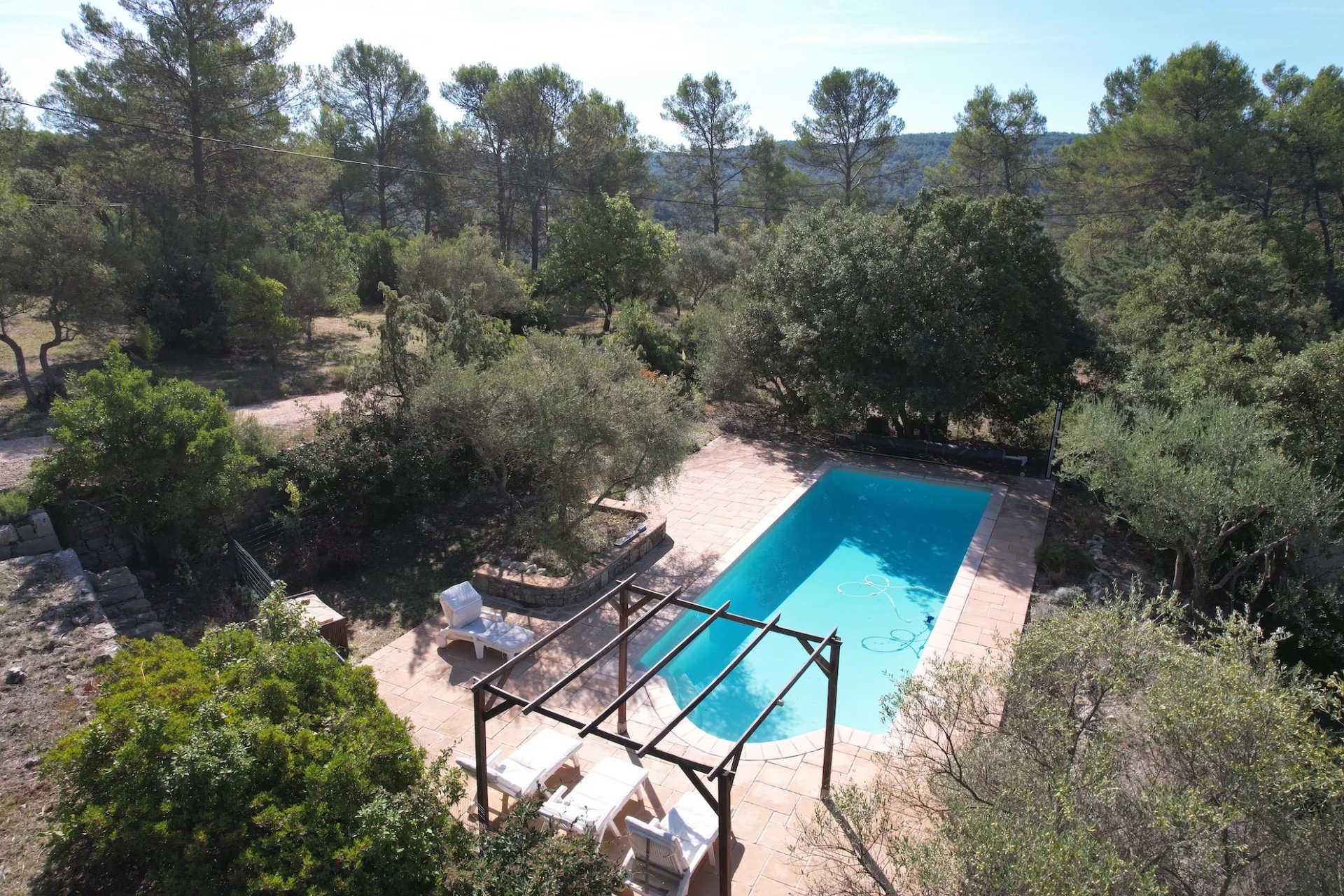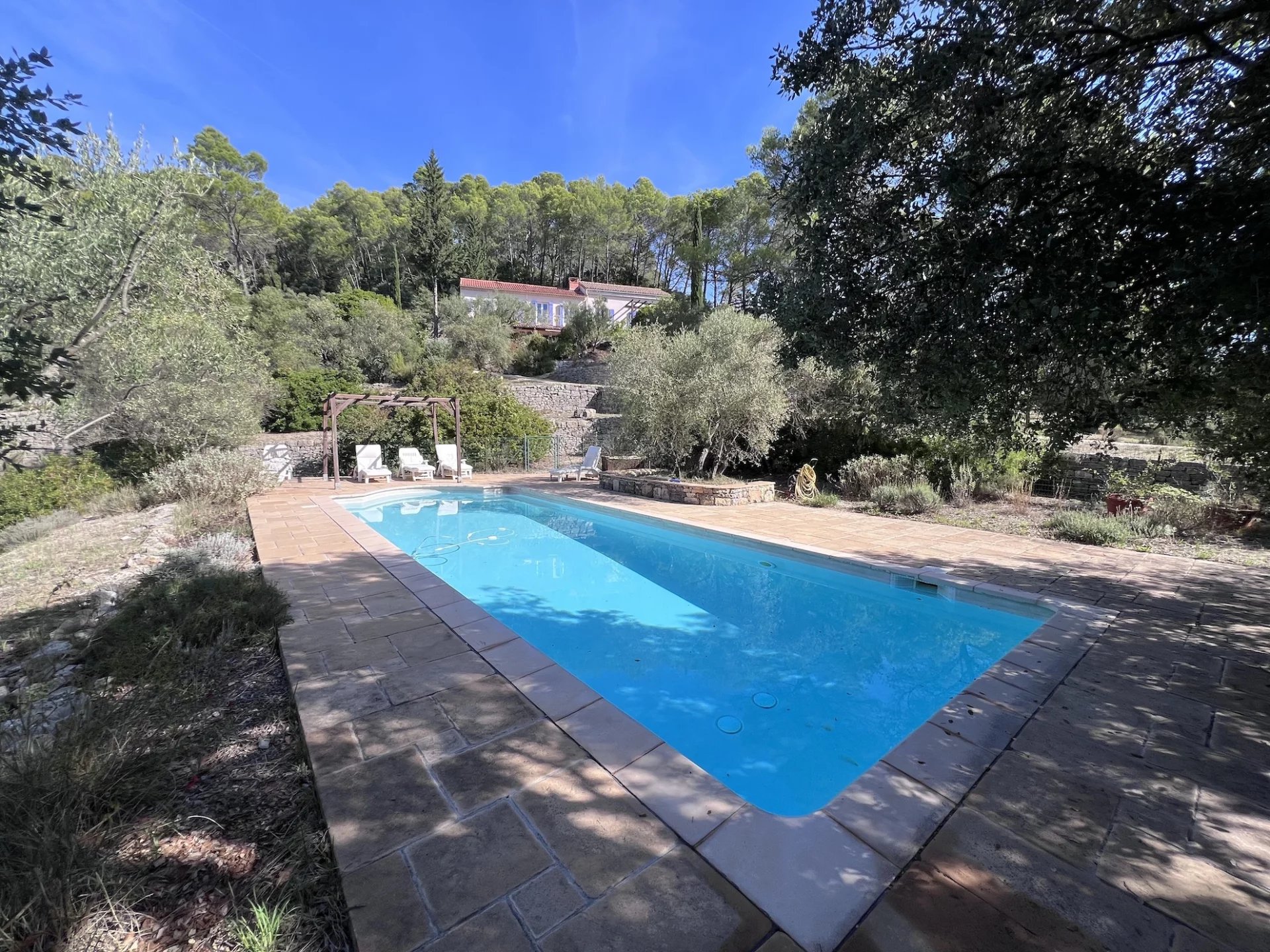 MAISON - 25 MINUTES DE COTIGNAC, à 25 minutes de Cotignac, au cœur de la Provence Verte, à proximité immédiate d'un adorable village et de l’ensemble des commodités, superbe propriété composée de deux logements implantée au coeur d'un parc arboré de 3,5 hectares avec de belles restanques en pierres sèches et planté de nombreuses essences méditerranéennes. En position dominante, elle offre une vue panoramique exceptionnelle et unique sur l'ensemble de la campagne environnante. Située dans un cadre campagne privilégié, au calme absolu, sans vis à vis. Une belle piscine chauffée (12 x 4 m) avec ses larges plages dallées agrémente le jardin qui est un véritable havre de paix. Maison 1 (100 m²) : salon avec cheminée, terrasse ombragée au sud, salle à manger, cuisine entièrement équipée avec poêle à bois, wc. A l’étage : dégagement, 1 confortable chambre parentale, 2 autres chambres, salle d’eau avec wc. Maison 2 (64 m²) : lumineux salon avec cuisine ouverte équipée, large terrasse solarium au Sud, 1 chambre, salle d’eau avec wc. A l’étage : mezzanine dominant le salon, 1 chambre, wc. Cave, cabanon, forage…Bénéficiant d'une exposition idéale au sud, la maison est lumineuse et agréable à vivre. En excellent état général, cette maison de qualité aux dimensions généreuses et aux volumes harmonieux est pleine de charme. Elle offre de nombreuses possibilités (grande famille, rapport locatif saisonnier, gîte, bureau, atelier d’artiste…) Coup de coeur assuré en résidence principale ou secondaire. Excellent rapport locatif saisonnier possible. Les informations sur les risques auxquels ce bien est exposé sont disponibles sur le site Géorisques : georisques.gouv.fr