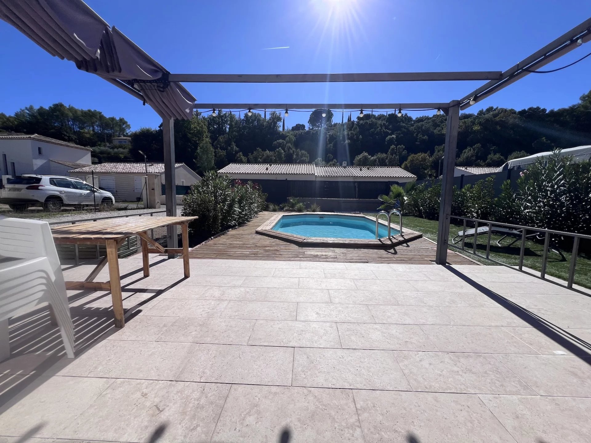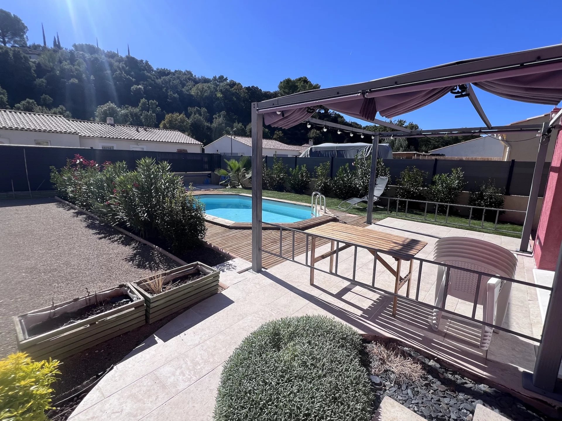 Maison - 10 minutes de Cotignac, au coeur de la Provence Verte, à proximité d'un adorable village de caractère avec de nombreux commerces, jolie maison provençale contemporaine implantée sur un terrain clos de 400 m² planté d’essences méditerranéennes. Exposée idéalement au Sud, la maison est lumineuse et agréable à vivre. Entrée avec dégagement et rangements, wc, salon / salle à manger s’ouvrant sur une terrasse ombragée au Sud et la piscine. Cuisine ouverte entièrement équipée, cellier / buanderie, 3 chambres avec rangements, salle d’eau avec wc. Terrain de pétanque. Cette maison de qualité (RT2012) en excellent état général offre des volumes confortables. Coup de cœur assuré, en résidence principale ou secondaire pour cette maison pleine de charme. Excellent rapport locatif saisonnier possible. Copropriété horizontale, charges de 50 / an. Les informations sur les risques auxquels ce bien est exposé sont disponibles sur le site Géorisques : georisques.gouv.fr